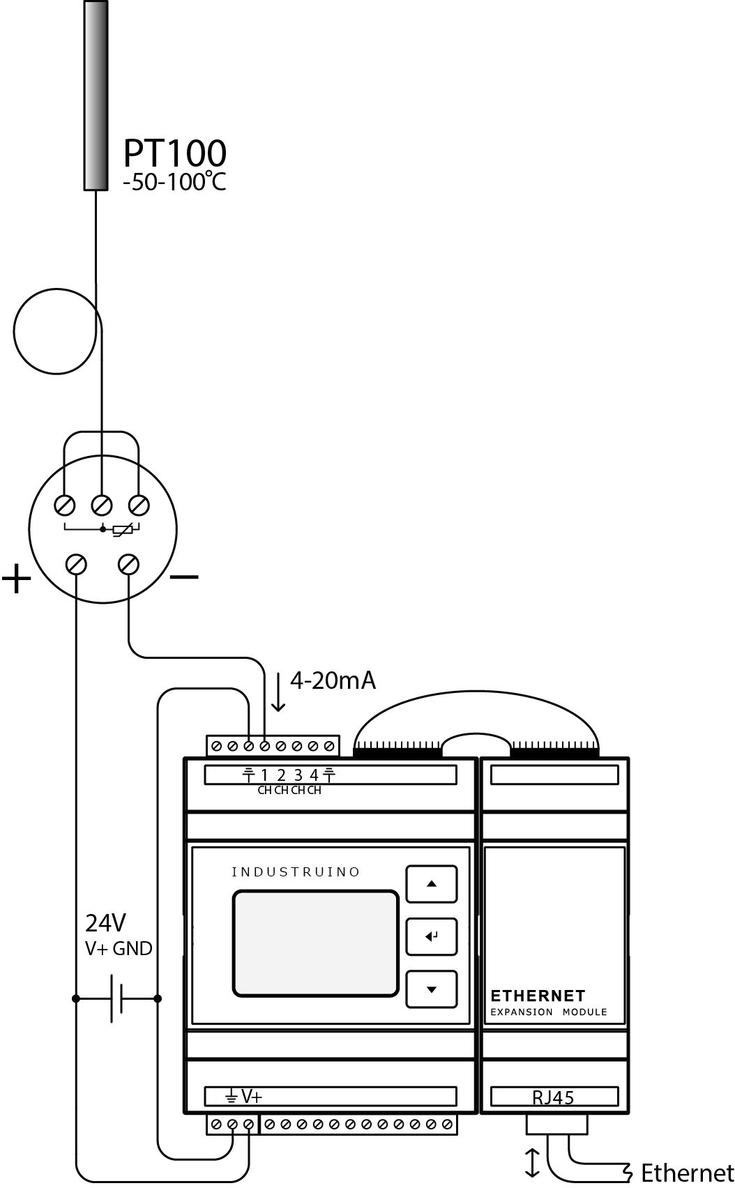 One of the unique features of the Industruino IND.I/O kit is that it has both inputs as well as outputs that support 4-20mA and 0-10V levels. We've made a small video to show you how you can read a PT100 temperature sensor via a 4-20mA transmitter and stream this data to the cloud for remote monitoring.