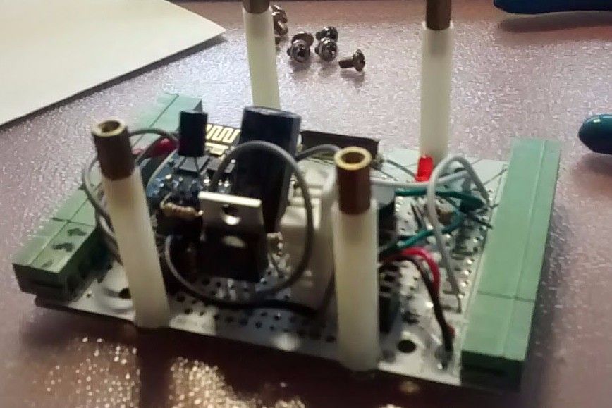 The ESP8266 that I used comes with 4x2 male pins so I added a header on the Industruino prototyping board to plug it in. It operates on 3V3 and can draw up to 200mA so I added a 500mA 3V3 voltage regulator and a large capacitor. The ESP8266 has a Serial interface; I used the standard Software Serial library to communicate with it at 9600 baud, connecting to emoncms.org and posting data to my account there.