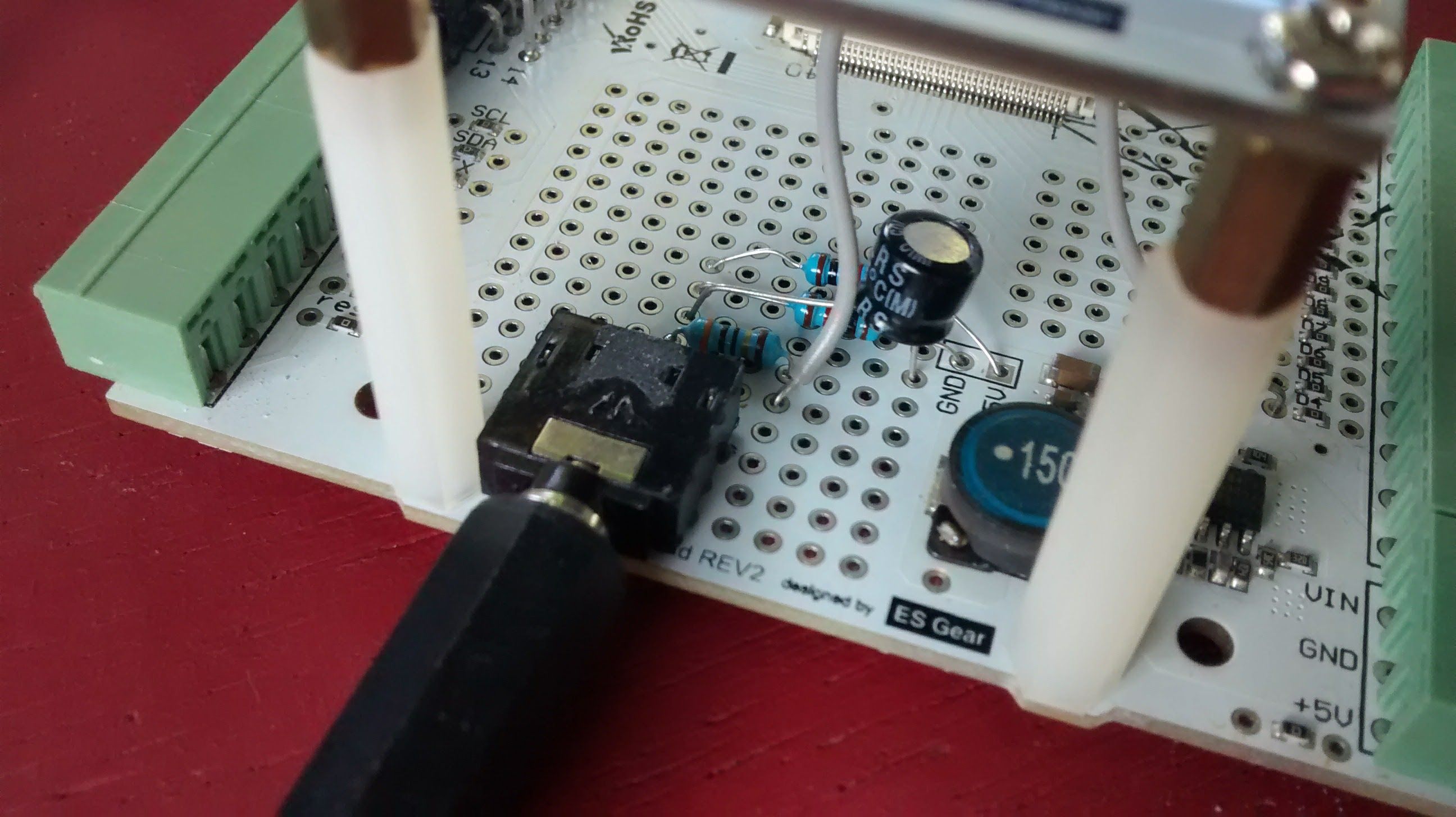 The CT has a 3.5mm (mono) jack and i put a socket on the Industruino PROTO's baseboard, enlarging the soldering holes to fit the pins.