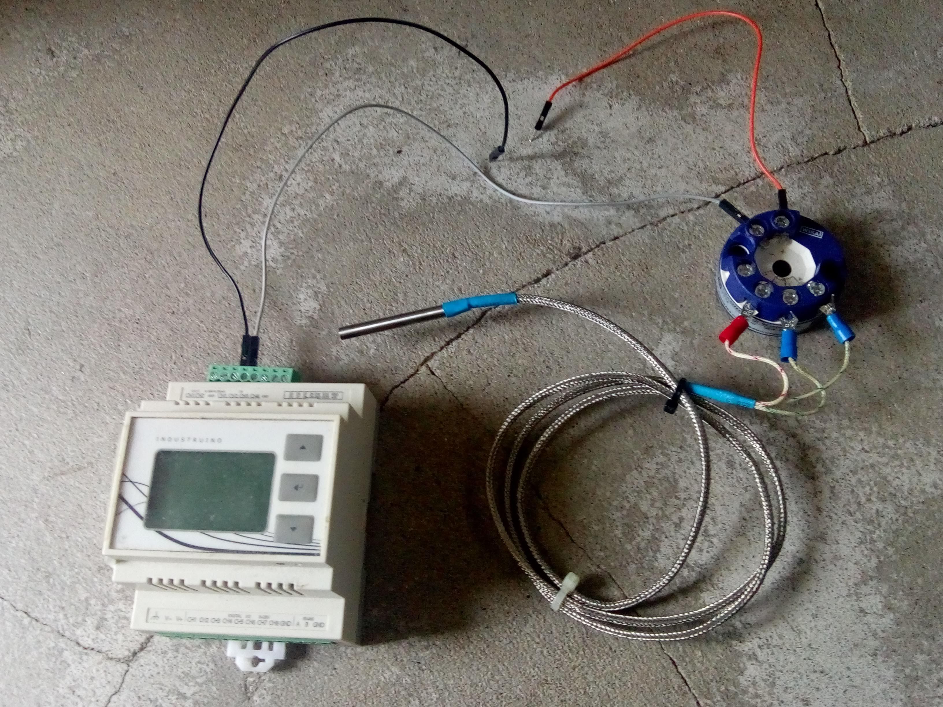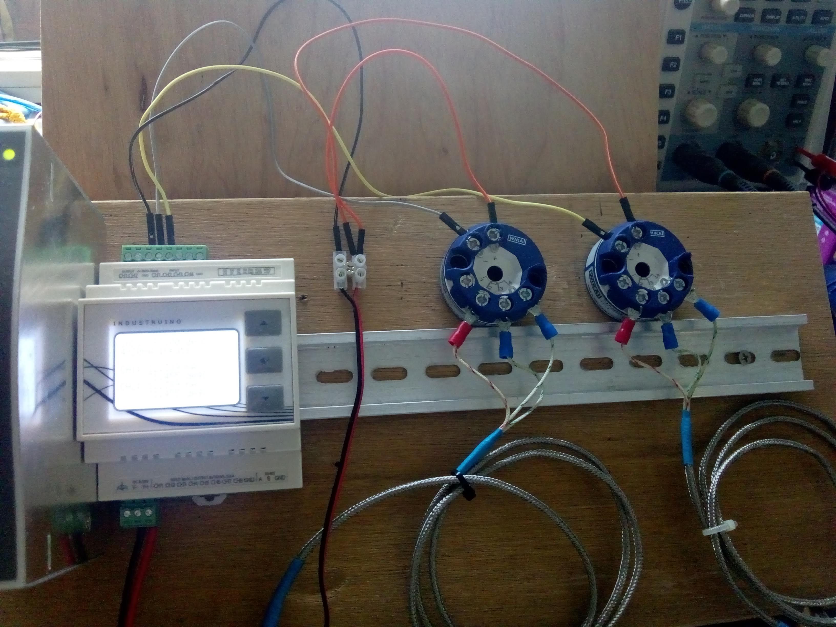 The INDIO has 4 analog input channels, so we can connect up to 4 PT100 sensors. In below example we connect 2.