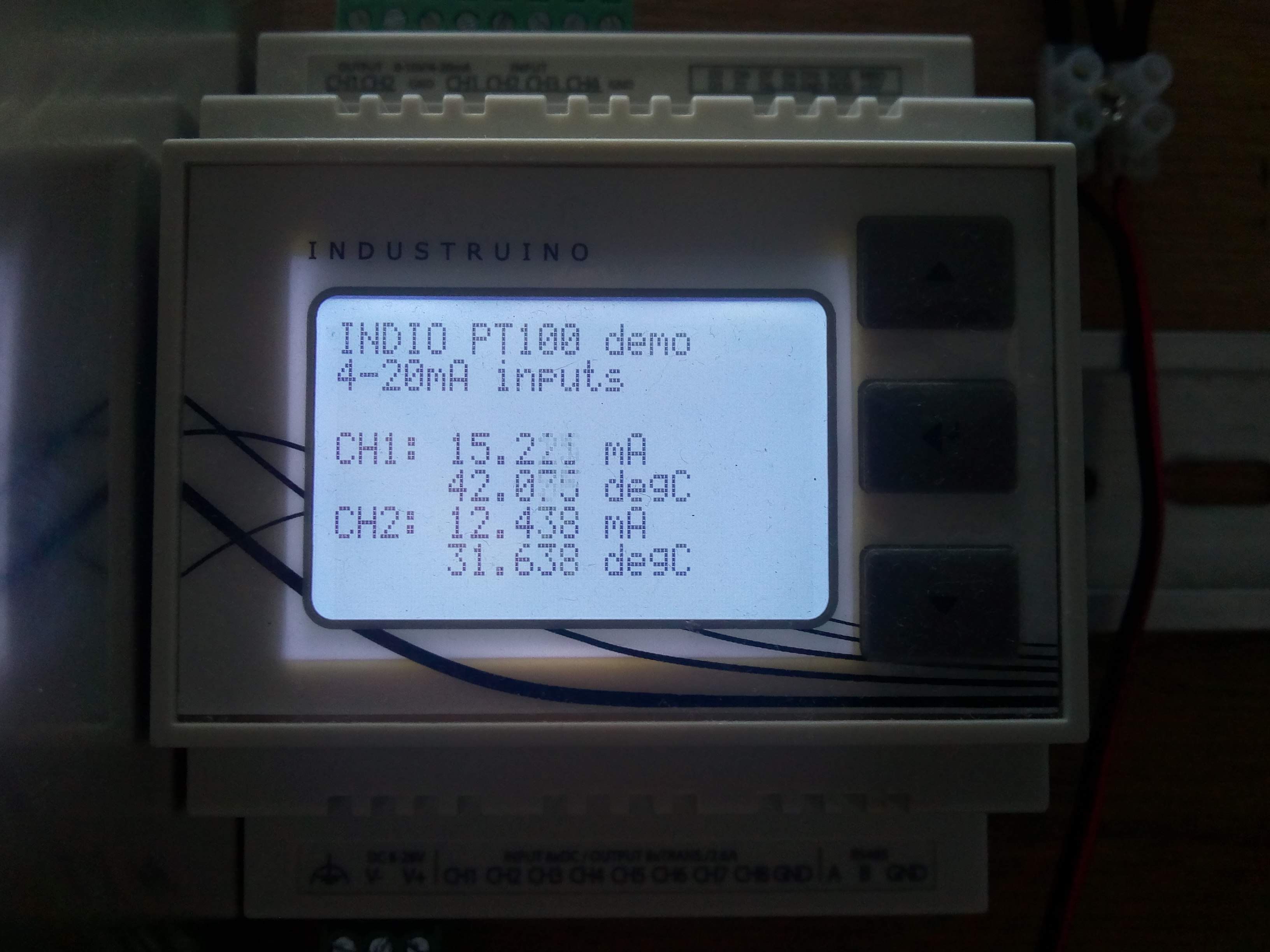 * DEMO for Industruino INDIO D21G analog input PT100 with 4-20mA transmitter