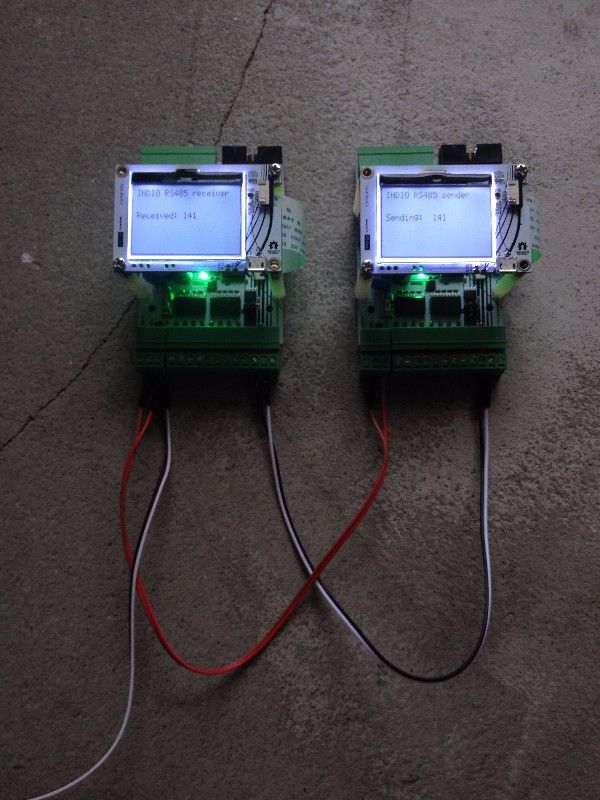 The Industruino INDIO has a half-duplex isolated RS485 transceiver, connected to the 'Serial' hardware serial ('Serial1' on the older 32u4 and 1286 boards). RS485 is a popular industrial standard for serial communications. It is often used with the Modbus protocol, as Modbus RTU. Using available libraries, this is relatively easy way to exchange data between Master/Slave(s) units, e.g. several INDIOs, or other sensors that support Modbus RTU.
